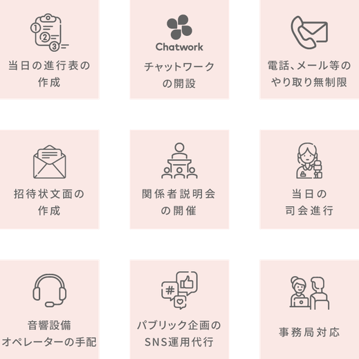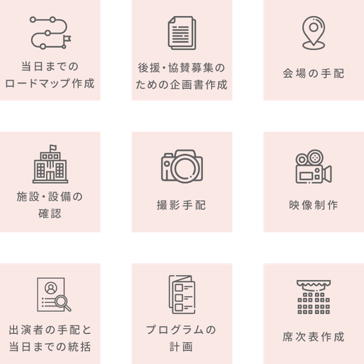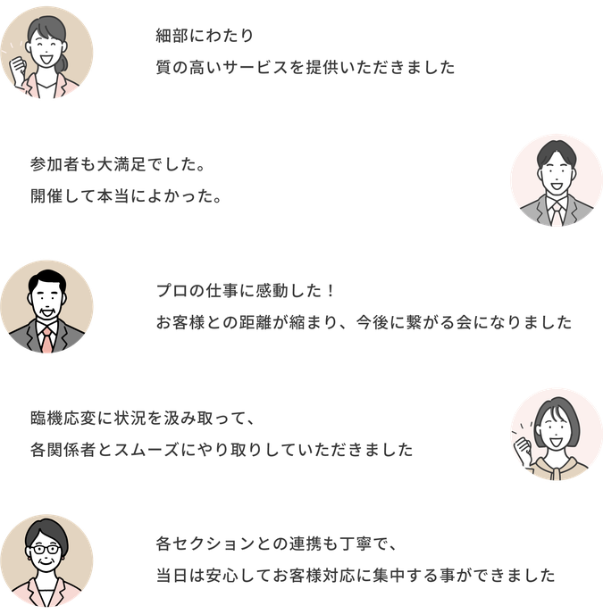 we deliver one-stop (end-to-end) support across the pre-event phase, event day, and post-event phase.